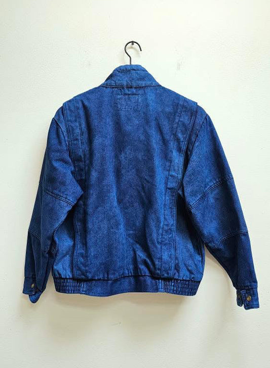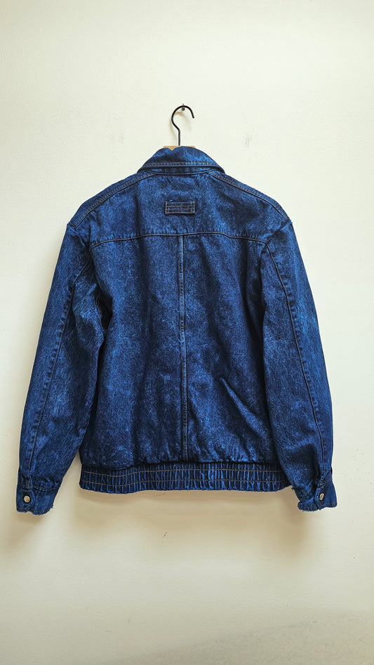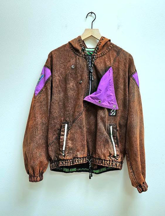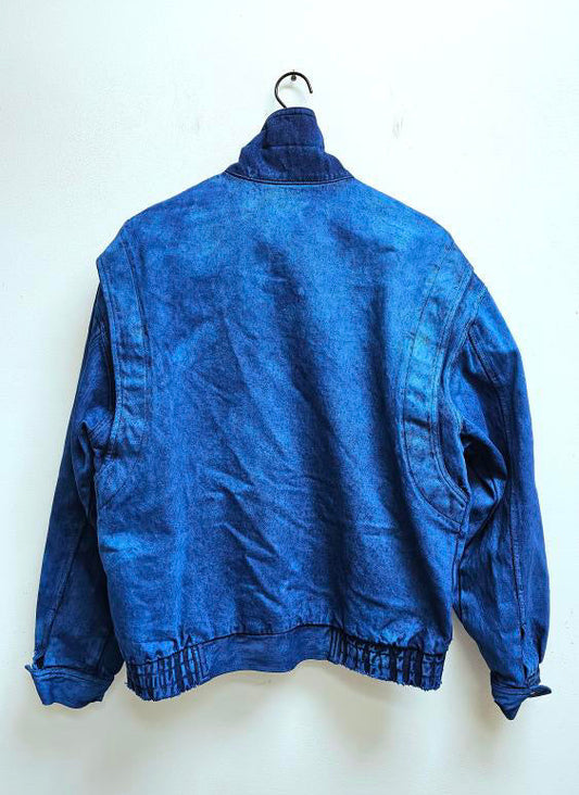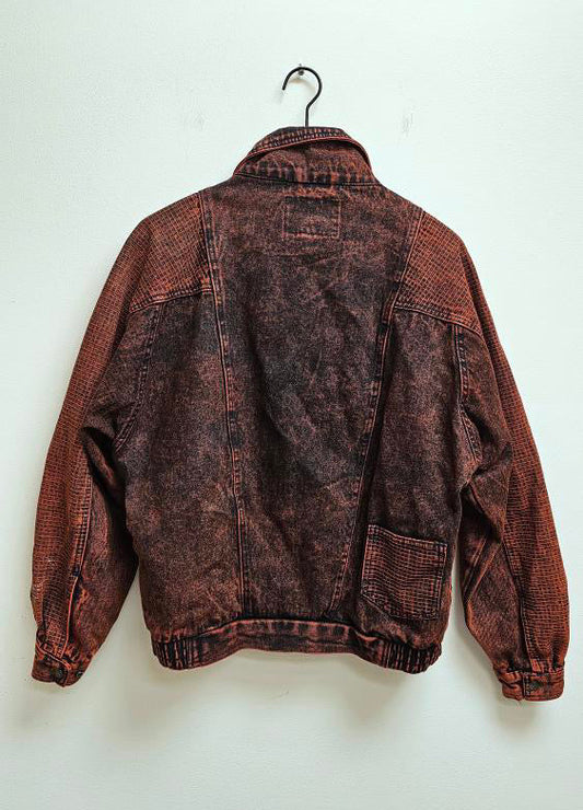Rust denim mixed media 80s bomber jacket L