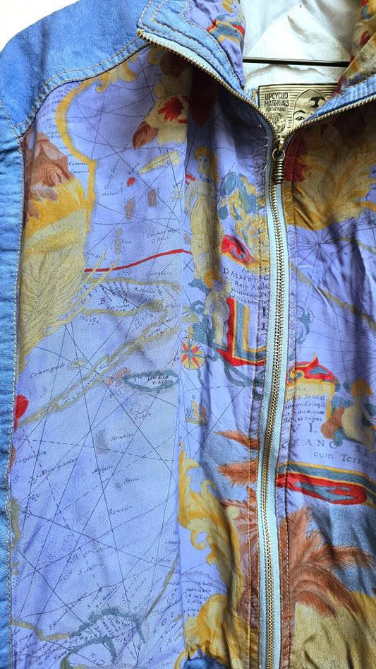 Map print vintage mixed media bomber jacket S