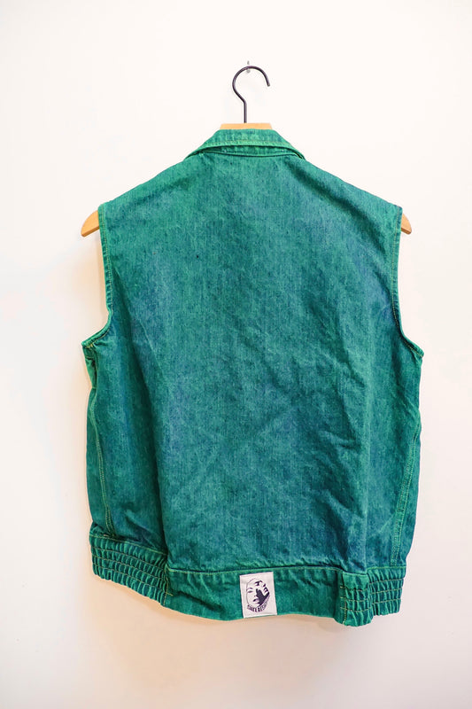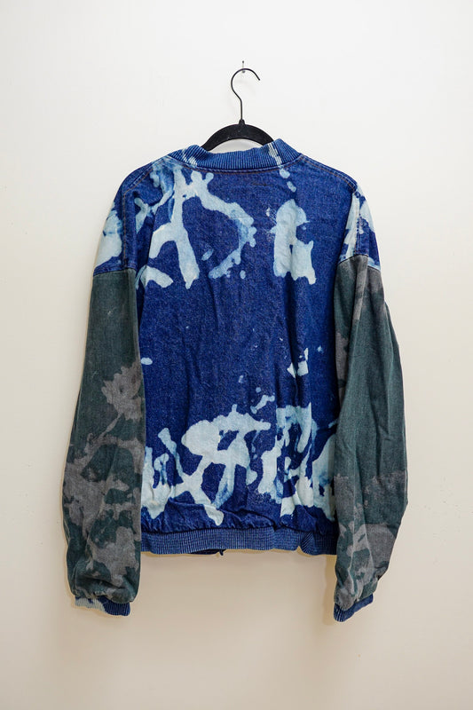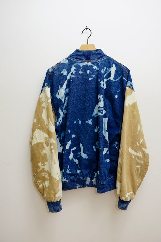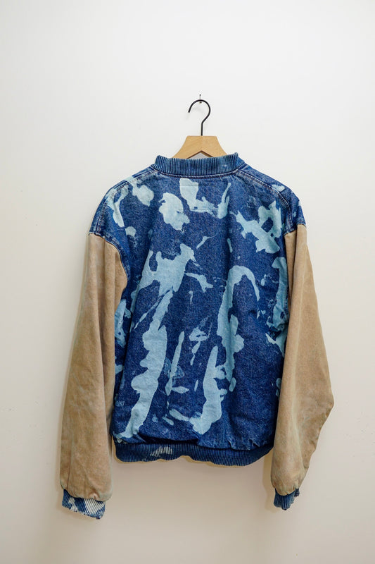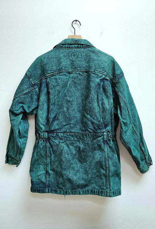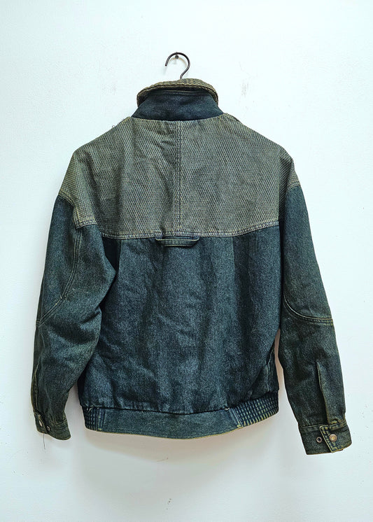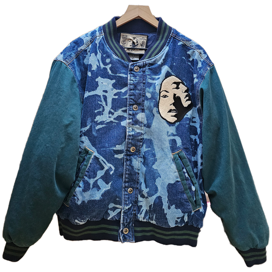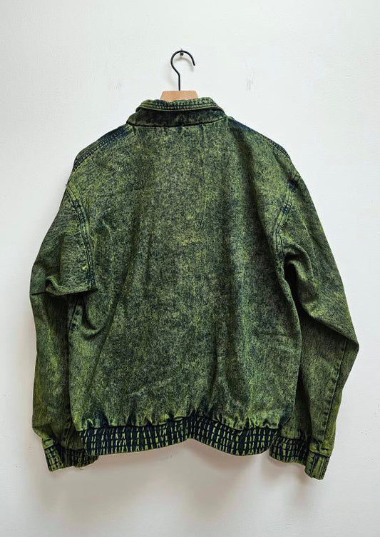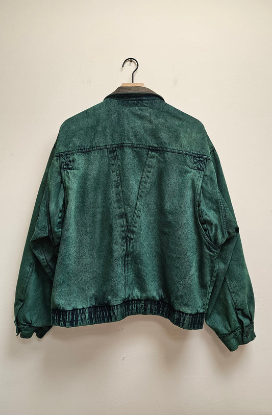 Green Canvas & Denim Acid wash vintage varsity jacket L